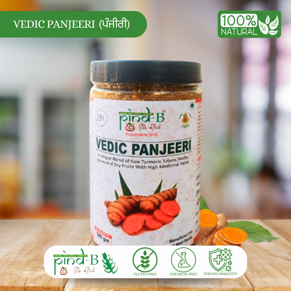 Panjiri is a dessert made with whole wheat flour (atta) meticulously roasted in pure desi ghee, sweetened with Khand, flavored with cardamoms and spices, and nutritiously packed with a generous amount of dry fruits.